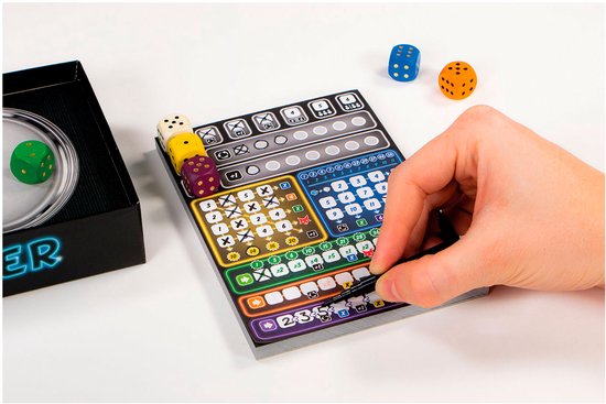 Hoe slimmer je kiest, hoe meer kans je hebt op het creëren van kettingreacties. Een paars vakje dat je invult kan een bonus geven waarmee je ook een geel vakje aan mag kruisen, waardoor misschien een tweede bonus in werking gaat die je een blauw vakje laat afvinken. Door zo de meeste clevere combo’s op te zetten behaal je de hoogste scores!