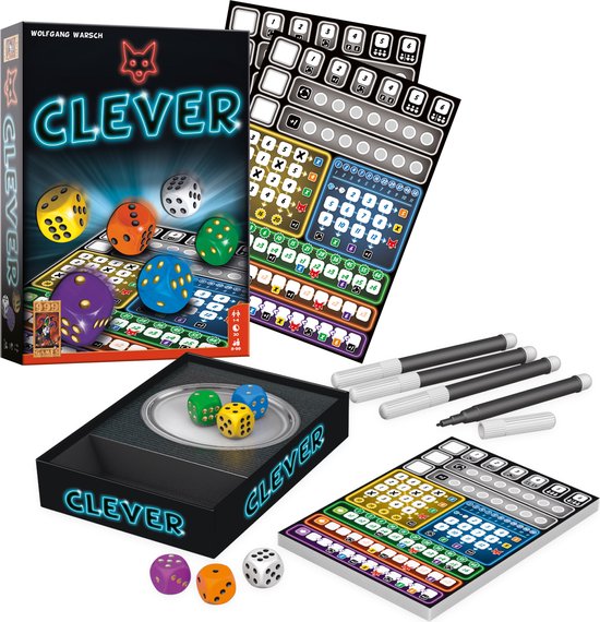 In Clever rol je met dobbelstenen voor punten. Elke dobbelsteen heeft een eigen kleur, die overeenkomt met een categorie op jouw persoonlijke scoreblad. De dobbelsteen die je na het rollen kiest, vul je op het scoreblad in. Elke kleurencategorie geeft punten op een eigen manier. Zo kruis je met de gele dobbelsteen vakjes aan in de gele categorie en vul je de waarde van de oranje dobbelsteen in bij de lege vakjes van de oranje categorie.